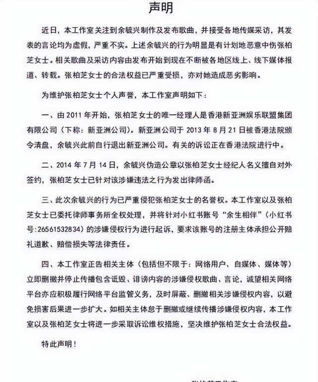 张柏芝方面全盘否认了余毓兴的说法。她说那份所谓的关键经纪合约,上面的签名根本就是伪造的,不是她本人签的。对于“干爹”这层关系,她也直接否认,说是对方自己编造出来的。